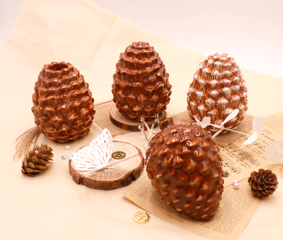 手工雕刻陶瓷松果蠟燭罐
